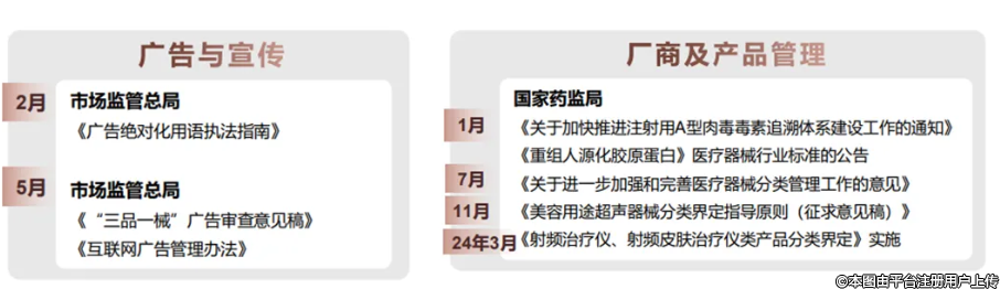 合規(guī)監(jiān)管針對醫(yī)美市場呈現(xiàn)愈發(fā)嚴(yán)格的趨勢。從產(chǎn)品研發(fā)到臨床試驗(yàn),再到最終的審批上市,每一步都充滿了挑戰(zhàn)。監(jiān)管政策的不斷更新,更是讓醫(yī)美產(chǎn)品獲證上市的難度不斷升級。獲證要求多,流程長,醫(yī)美產(chǎn)品的研發(fā)、生產(chǎn)、上市、推廣等都受到嚴(yán)格的管控與制約。