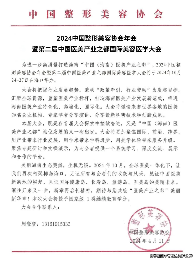 為進(jìn)一步高質(zhì)量打造海南“中國(guó)(海南)醫(yī)美產(chǎn)業(yè)之都”,2024中國(guó)整形美容協(xié)會(huì)年會(huì)暨第二屆中國(guó)醫(yī)美產(chǎn)業(yè)之都國(guó)際美容醫(yī)學(xué)大會(huì)將于2024年10月24-27日在海口舉辦。
