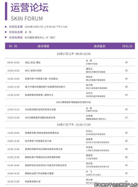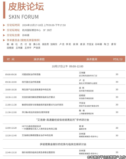 本次大會將分為面部年輕化主會場、激光皮膚會場、運營新媒體會場等多個精彩板塊。全面覆蓋產(chǎn)學(xué)研,集學(xué)術(shù)技術(shù)、藝術(shù)管理、時尚文化于一身,在這里有來自美國、歐洲、日本、韓國、中國臺灣等世界各地的眾多行業(yè)精英及供應(yīng)商的積極參與,分享來自醫(yī)美精英的智慧與經(jīng)驗,相互交流、學(xué)習(xí)、合作。