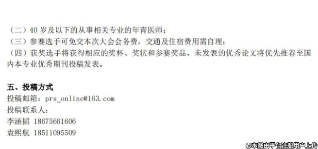 4.投稿郵箱:prs_online@163.com,截稿日期為2024年11月11日24:00。3比賽形式1.論壇收集論文摘要或全文的電子版,論壇委員會(huì)將組織專家進(jìn)行論文預(yù)選,主辦方將以電話和郵件方式通知“入選選手”;