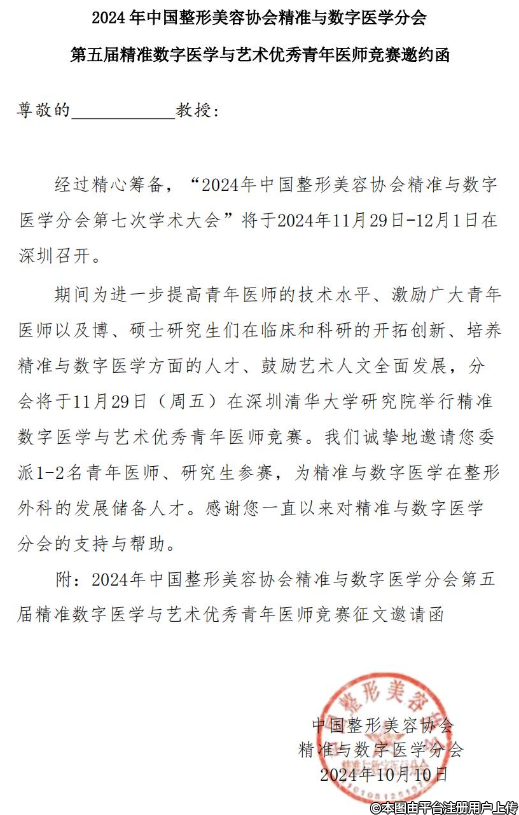 2024年中國(guó)整形美容協(xié)會(huì)精準(zhǔn)與數(shù)字醫(yī)學(xué)分會(huì)第五屆精準(zhǔn)數(shù)字醫(yī)學(xué)與藝術(shù)優(yōu)秀青年醫(yī)師競(jìng)賽邀約函