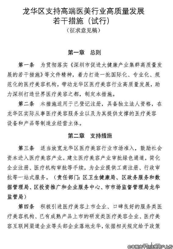 深圳龍華區(qū)10月25日發(fā)布《龍華區(qū)支持高端醫(yī)美行業(yè)高質(zhì)量發(fā)展若干措施(征求意見稿)》。其中提到,適當放寬龍華區(qū)醫(yī)療美容行業(yè)市場準入,鼓勵社會資本進入醫(yī)療美容產(chǎn)業(yè)。建立醫(yī)療美容產(chǎn)業(yè)審批綠色通道,簡化企業(yè)注冊、醫(yī)療機構(gòu)審批等手續(xù),為企業(yè)提供工商注冊、行政審批等一站式服務(wù)。積極引進醫(yī)療美容上市企業(yè)、口碑良好的服務(wù)類醫(yī)療美容機構(gòu)、已有成熟產(chǎn)品上市的研發(fā)類醫(yī)療美容企業(yè)、醫(yī)療美容互聯(lián)網(wǎng)渠道企業(yè)等頭部企業(yè)落地龍華,依據(jù)相關(guān)規(guī)定給予政策優(yōu)惠。