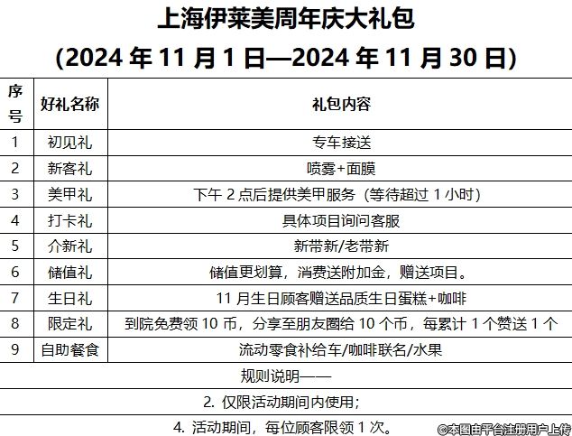 年度特惠 上海伊萊美周年盛典大禮包