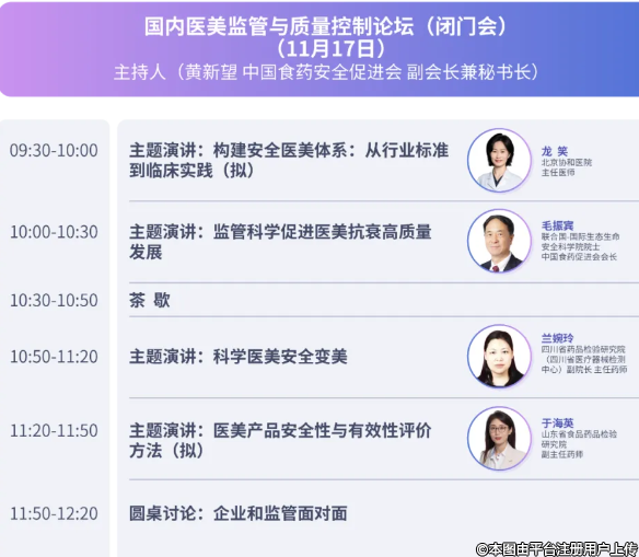 監(jiān)管與質(zhì)量控制論壇,匯聚國內(nèi)審評監(jiān)管領(lǐng)域的權(quán)威專家,解析醫(yī)美用醫(yī)療器械的質(zhì)量標(biāo)準(zhǔn)、審批流程,探討如何提高醫(yī)美機(jī)構(gòu)的服務(wù)質(zhì)量,推動(dòng)國內(nèi)醫(yī)美行業(yè)高質(zhì)量合規(guī)發(fā)展。