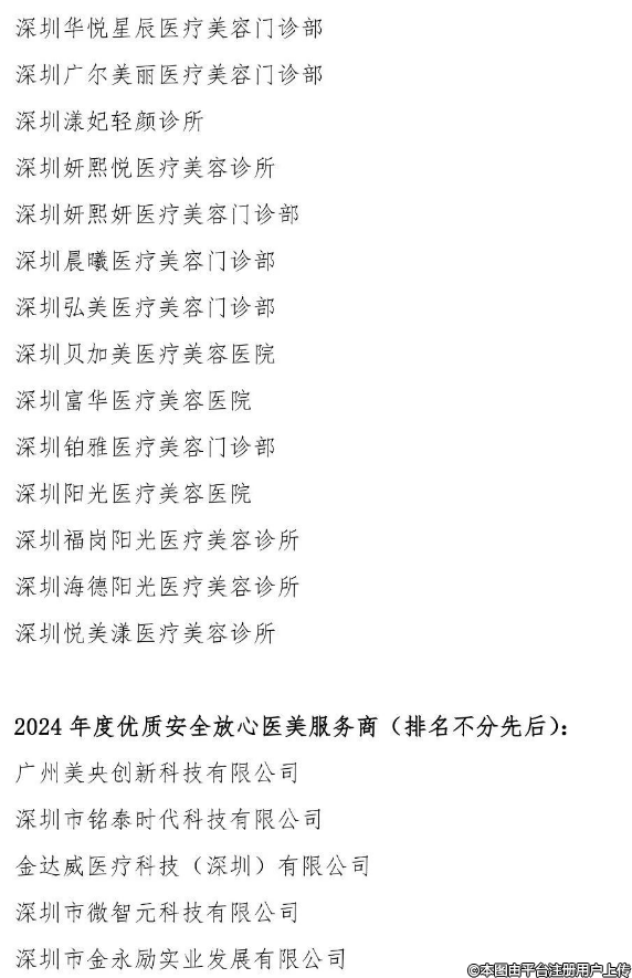 2024年度優(yōu)質(zhì)安全放心醫(yī)美服務(wù)商(排名不分先后):