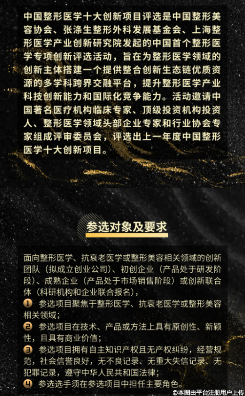 1、參選項目聚焦于整形醫(yī)學、抗衰老醫(yī)學或整形美容相關領域;