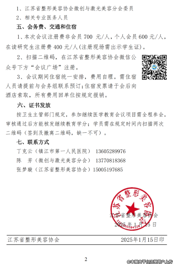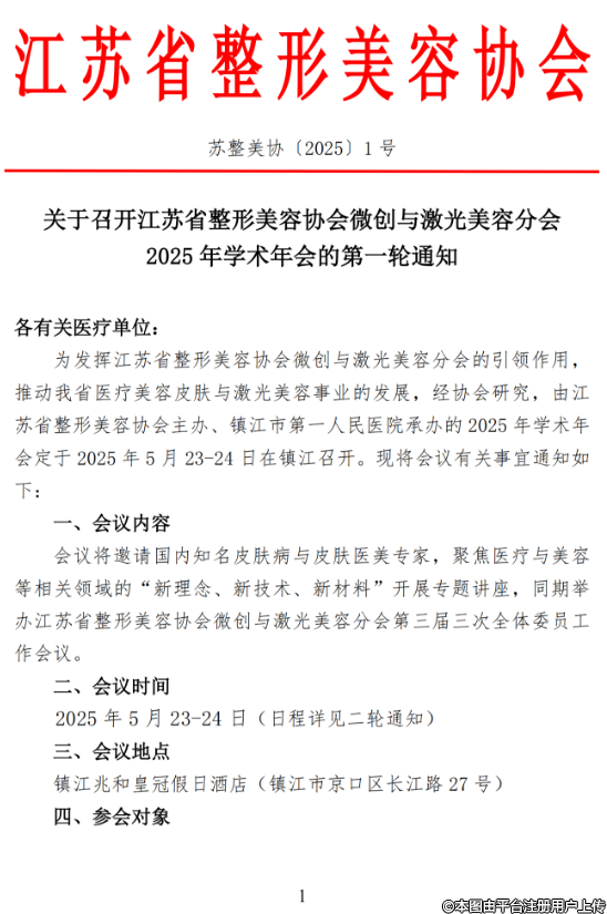 關于召開江蘇省整形美容協(xié)會微創(chuàng)與激光美容分會2025年學術年會的第一輪通知