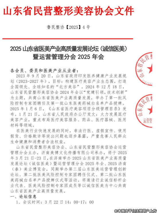 2025 山東省醫(yī)美產(chǎn)業(yè)高質(zhì)量發(fā)展論壇(誠信醫(yī)美)暨運(yùn)營管理分會(huì) 2025 年會(huì)