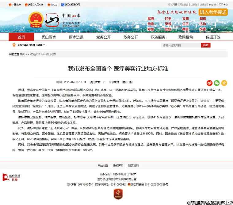 麗水發(fā)布全國首個醫(yī)美地方標準,為全國醫(yī)美行業(yè)規(guī)范化建設(shè)提供"麗水樣板"