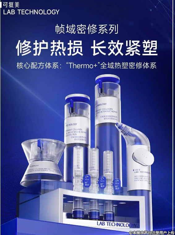 據(jù)悉,幀域密修系列是可復(fù)美推出的第五個妝品系列,也是可復(fù)美首個針對醫(yī)美項目術(shù)后人群開發(fā)的妝品系列,核心成分為“IV型熱塑膠原”,全稱為“天然序列重組IV型膠原蛋白”,其具備精準促生熱休克蛋白、穩(wěn)定熱休克蛋白微環(huán)的功效,主要圍繞緩解皮膚光電項目等特殊護理后的不適、幫助鞏固項目效果、兼具修護舒緩與緊致控紋等。