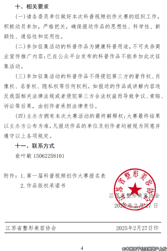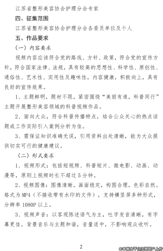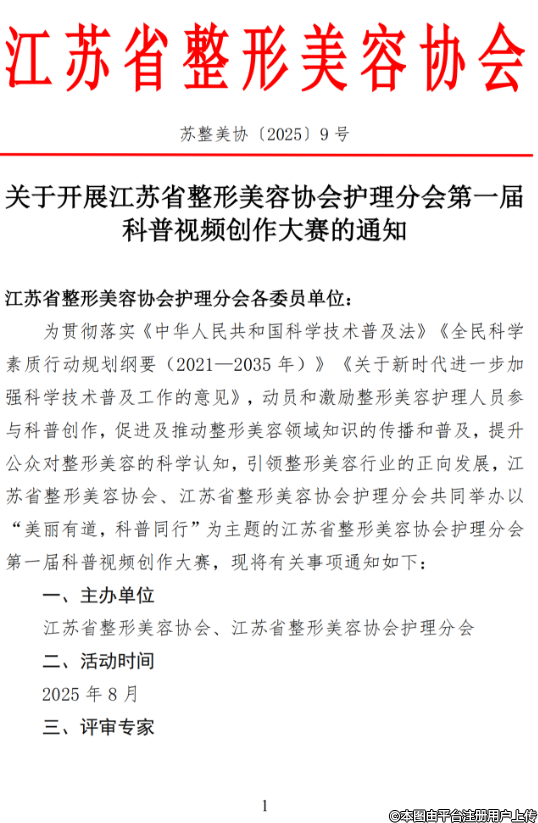 關于開展江蘇省整形美容協(xié)會護理分會第一屆科普視頻創(chuàng)作大賽的通知