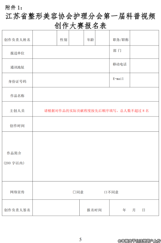 將報名表(附件 1)、簽字及蓋章后的作品版權(quán)承諾書(附件 2)和參賽作品壓縮打包發(fā)至指定郵箱:498700408@gg.com。郵件命名:醫(yī)院+姓名+作品題目。