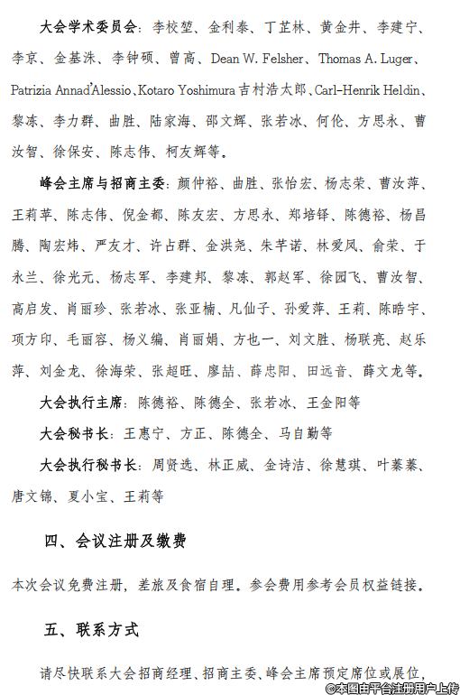 請盡快聯(lián)系大會招商經(jīng)理、招商主委、峰會主席預(yù)定席位或展位,以確保您的參與。