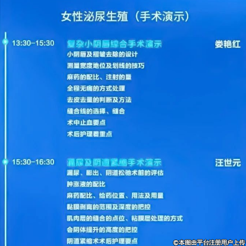 5、微創(chuàng)束帶在漏尿及陰道收緊操作的細節(jié)、層次、錨定點定位、束帶的固定處理、麻藥的配比、腫漲液的注射。