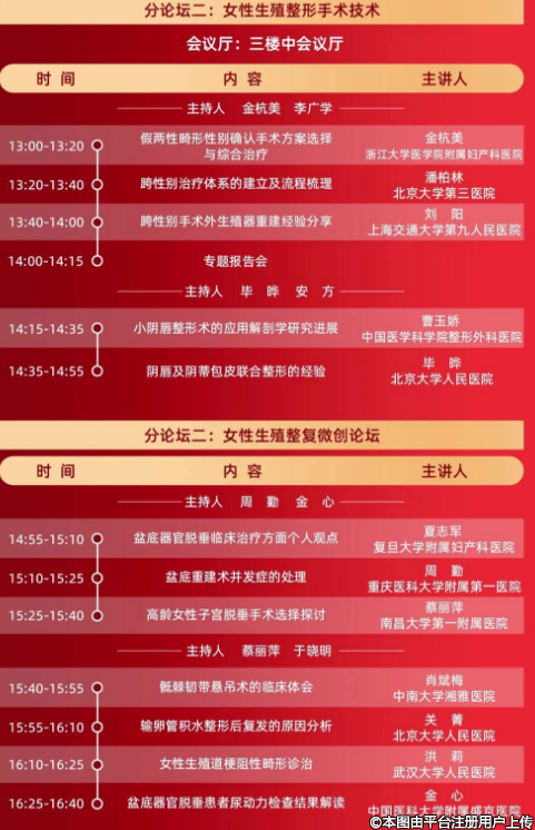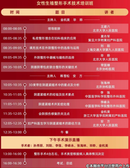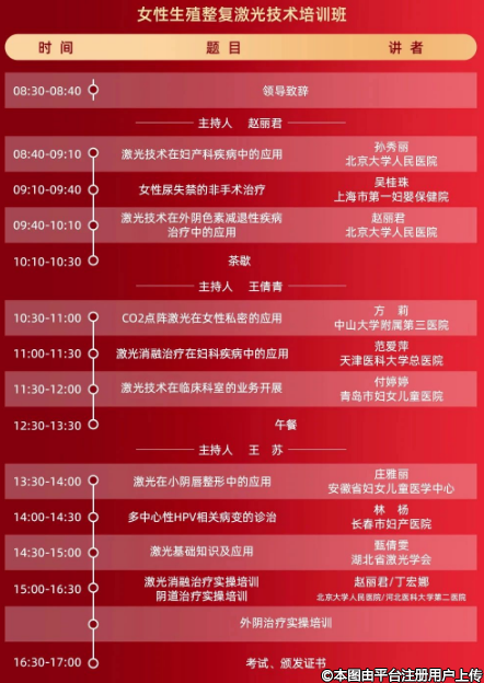 作為女性生殖整復(fù)年度學(xué)術(shù)盛會(huì),將始終以重學(xué)術(shù)、高質(zhì)量、創(chuàng)品牌的理念為目的,帶來新信息和新技術(shù)應(yīng)用的結(jié)果。大會(huì)將邀請(qǐng)國(guó)際、國(guó)內(nèi)資深的專家做專題報(bào)告和手術(shù)演示,設(shè)置4個(gè)主題,女性生殖整復(fù)激光技術(shù);生殖整復(fù)物理技術(shù),生殖整復(fù)微創(chuàng)治療;生殖整形手術(shù)論壇,并就每個(gè)主題做深度討論及分享。會(huì)議采用學(xué)術(shù)交流的形式,應(yīng)用多媒體演示、即時(shí)解惑答疑,充分討論等形式進(jìn)行深入淺出的交流。相信今年的研討會(huì)將更加精彩紛呈,給大家?guī)硪粓?chǎng)餮學(xué)術(shù)盛宴。