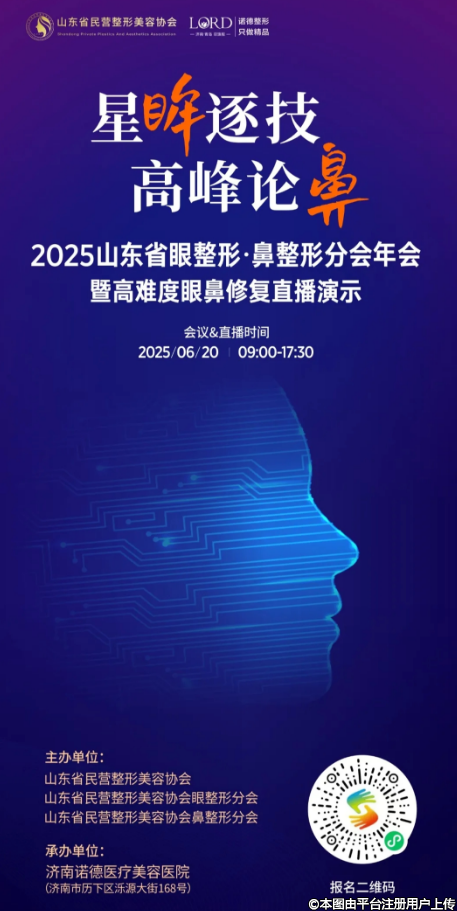 茲定于6月20日(周五)在濟(jì)南召開(kāi)2025山東省眼整形、鼻整形分會(huì)年會(huì)暨高難度眼鼻修復(fù)直播演示。會(huì)議主題為星【眸】逐技·高峰論【鼻】。致力于眼、鼻整形學(xué)術(shù)專業(yè)交流,囊括眼周黃金美學(xué)審美交流、鼻部手術(shù)設(shè)計(jì)、眼鼻整形高難度手術(shù)修復(fù)實(shí)操演示等,致力于分享眼鼻整形新技術(shù)、新方法、新理念,加強(qiáng)行業(yè)內(nèi)的交流與合作,提高醫(yī)美從業(yè)者的專業(yè)水平,推動(dòng)山東省醫(yī)美行業(yè)的健康發(fā)展。本次會(huì)議由山東省民營(yíng)整形美容協(xié)會(huì)眼整形分會(huì)、山東省民營(yíng)整形美容協(xié)會(huì)鼻整形分會(huì)主辦,濟(jì)南諾德醫(yī)療美容醫(yī)院承辦。