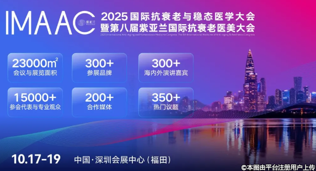 為跨學(xué)科資源整合與全球醫(yī)美產(chǎn)業(yè)協(xié)同發(fā)展,中國抗衰老促進(jìn)會、南方科技大學(xué)醫(yī)學(xué)院、南方科技大學(xué)穩(wěn)態(tài)醫(yī)學(xué)研究院與紫亞蘭國際會展(深圳)有限公司共同舉辦的“2025國際抗衰老與穩(wěn)態(tài)醫(yī)學(xué)大會暨第八屆紫亞蘭國際抗衰老醫(yī)美大會”,將于2025年10月17-19日在中國·深圳會展中心(福田)6-8號館盛大啟幕!