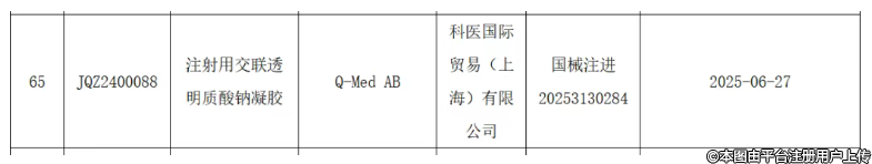 6月27日,高德美旗下注射用交聯(lián)透明質(zhì)酸鈉凝膠獲得國家藥監(jiān)局批準注冊,注冊證號為國械注進20253130284。