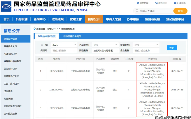艾爾建美學保妥適額紋適應(yīng)癥申請獲NMPA受理