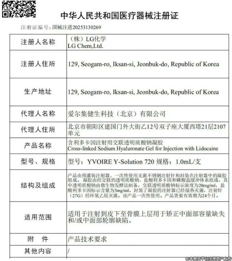 該產(chǎn)品適用于注射至皮下至骨膜上層,用于矯正中面部容量缺失和/或中面部輪廓缺陷,精準定位于中面部年輕化市場。??其中,LG化學隸屬于韓國三大集團之一——LG,旗下知名玻尿酸品牌「伊婉」在國內(nèi)市場上有重要地位。不過細看伊婉C、伊婉V、伊婉cp與伊婉致美,適應(yīng)癥都集中在糾正重度鼻唇溝皺紋。