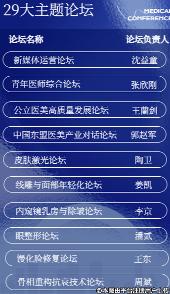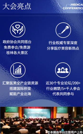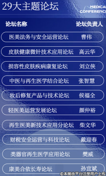 本次大會(huì)將設(shè)30個(gè)分論壇,300余場(chǎng)主題演講,涵蓋學(xué)術(shù)交流、技術(shù)展示、產(chǎn)業(yè)對(duì)接等多個(gè)板塊,各學(xué)科專家匯集,旨在搭建一個(gè)國(guó)際化、公益化、專業(yè)化、規(guī)范化、產(chǎn)業(yè)化全方位醫(yī)美交流平臺(tái)。