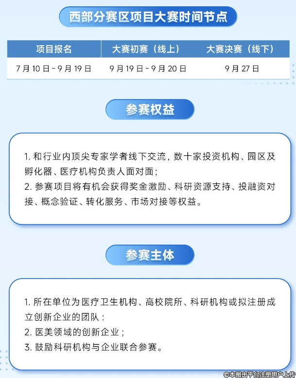 西部賽區(qū)報(bào)名工作正在火熱進(jìn)行中!我們誠(chéng)摯邀請(qǐng)西部賽區(qū)內(nèi)的優(yōu)質(zhì)項(xiàng)目、團(tuán)隊(duì)及個(gè)人把握機(jī)遇,踴躍報(bào)名參與這場(chǎng)創(chuàng)新盛宴!
