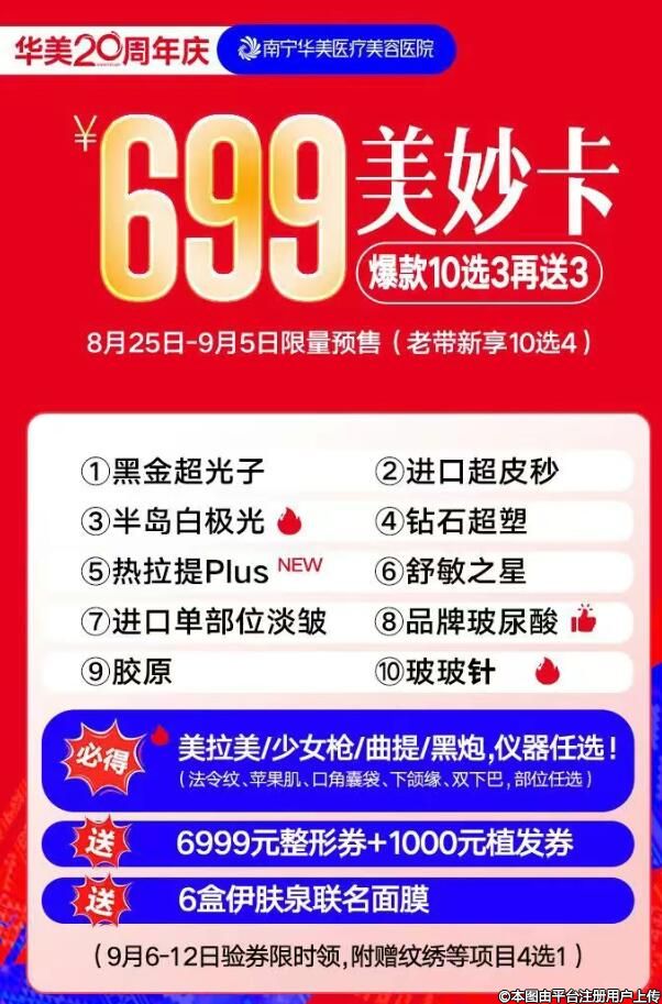 南寧華美20周年慶 | 699元美妙卡正式開搶!享項目10選3再送3!