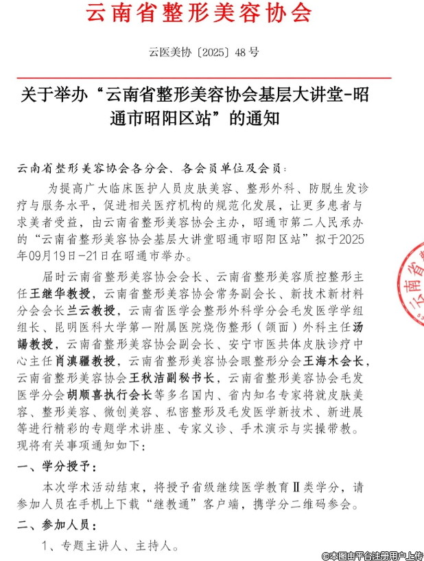 關(guān)于舉辦“云南省整形美容協(xié)會(huì)基層大講堂-昭通市昭陽區(qū)站”的通知
