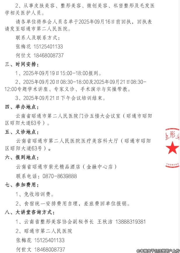 請(qǐng)各單位將參會(huì)人員名單于2025年09月16日前回執(zhí),回執(zhí)表請(qǐng)發(fā)至昭通市第二人民醫(yī)院。