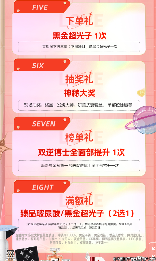 緊急通知!【阜陽皇宮醫(yī)美年終盛典寵粉直播夜】,12月10日 晚19:30。相約直播間。100+人氣尖貨 放價(jià)嗨購。看直播享八重豪禮、簽到禮、分享禮、紅包禮、邀請禮、下單禮、抽獎(jiǎng)禮、榜單禮、滿額禮,萬元紅包雨,狂撒直播間。直播間互動(dòng)送好禮,更有多項(xiàng)年終盛典寵粉卡?,F(xiàn)在入手,非常合適!為了回饋新老客戶對我們信任和支持,12.10號一場年終寵粉直播活動(dòng),11號還有抖音男團(tuán)直播!每天都有紅包雨,有獎(jiǎng)競猜,免費(fèi)送項(xiàng)目的活動(dòng)。邀請好友進(jìn)群互動(dòng)我們也有額外的驚喜等著你,趕緊參與我們的寵粉活動(dòng)吧!