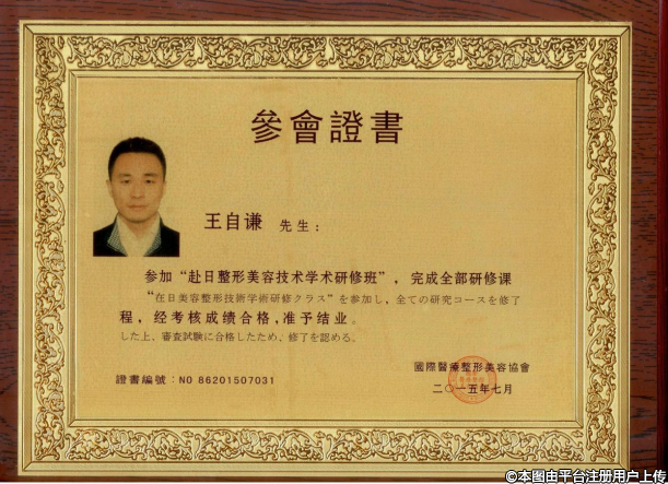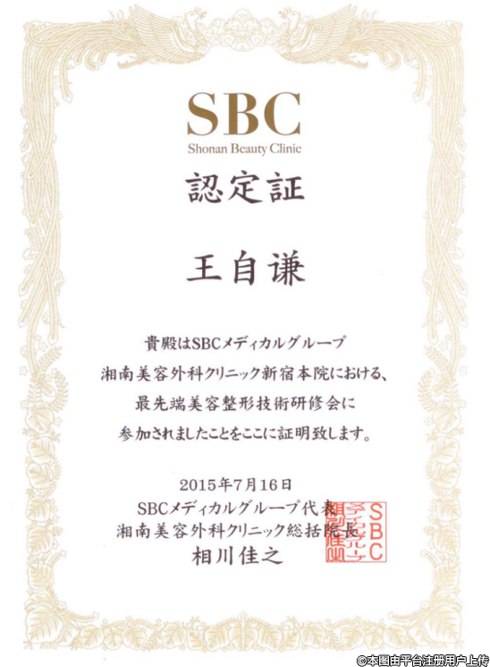 2015年,參加PRP+自體脂肪再生醫(yī)學國際技術交流大會參加“赴日整形美容技術學術研修班”完成全部研修課程