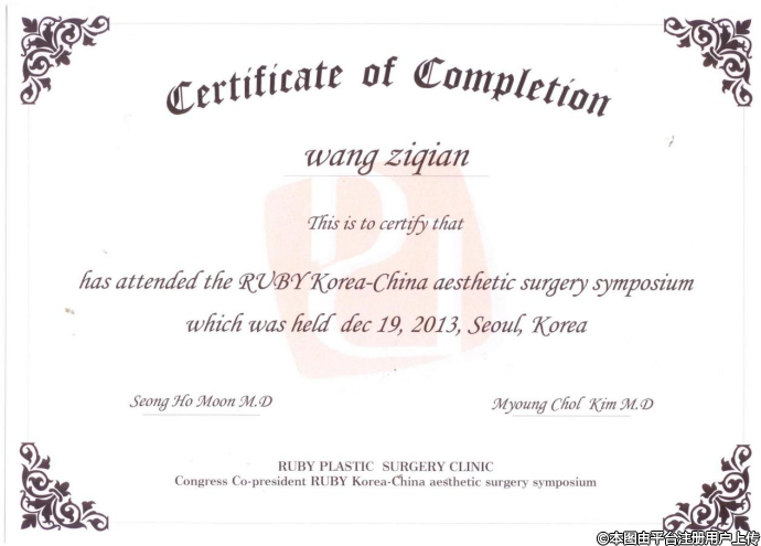 2013年,參加中韓整形美容國際技術交流團·第28屆韓國精細整形美容手術研修會;
