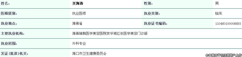 主要執(zhí)業(yè)機構(gòu):海南瑞韓醫(yī)學(xué)美容醫(yī)院京華城紅妝醫(yī)學(xué)美容門診部