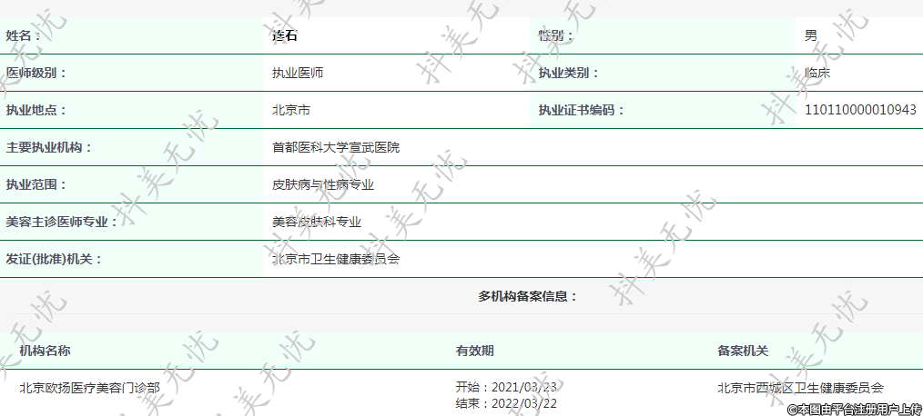 美容主診醫(yī)師專業(yè):美容皮膚科專業(yè)