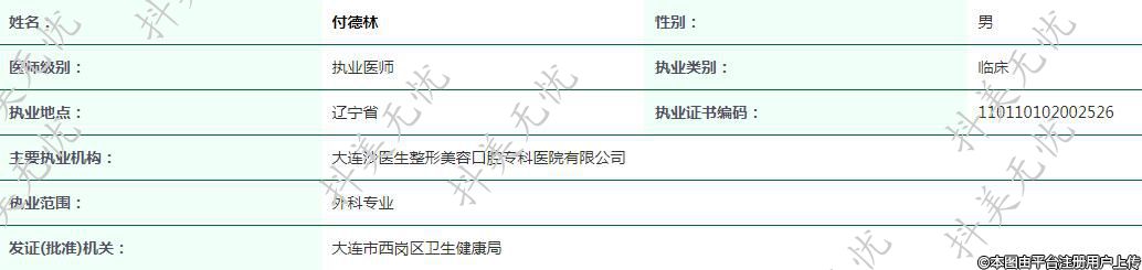 主要執(zhí)業(yè)機構(gòu):大連沙醫(yī)生整形美容口腔??漆t(yī)院有限公司