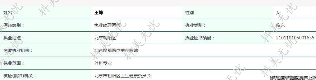 主要執(zhí)業(yè)機構(gòu):北京麗都醫(yī)療美容醫(yī)院