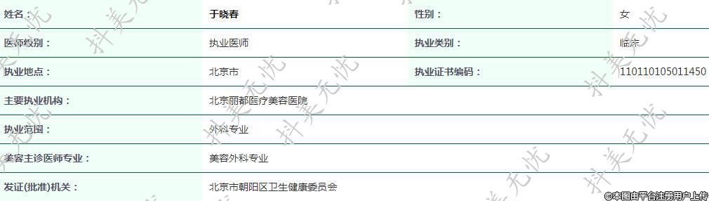 主要執(zhí)業(yè)機構(gòu):北京麗都醫(yī)療美容醫(yī)院
