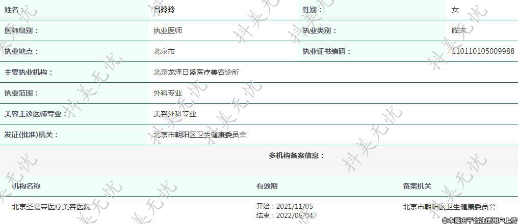 主要執(zhí)業(yè)機(jī)構(gòu):北京龍澤日盛醫(yī)療美容診所