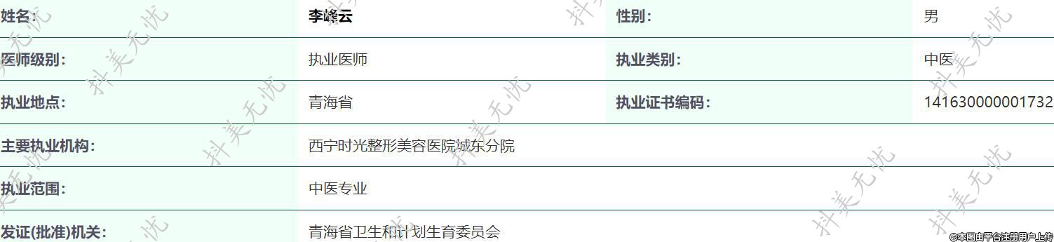 西寧時光醫(yī)療美容執(zhí)業(yè)醫(yī)師 -
