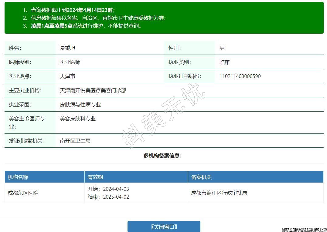 主要執(zhí)業(yè)機構(gòu):天津南開悅美醫(yī)療美容門診部