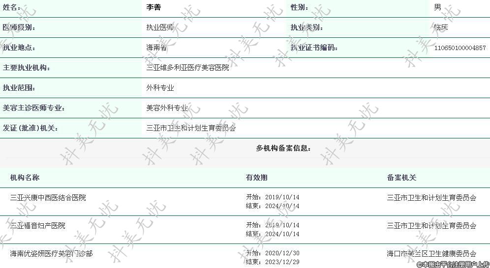 主要執(zhí)業(yè)機構(gòu):三亞維多利亞醫(yī)療美容醫(yī)院