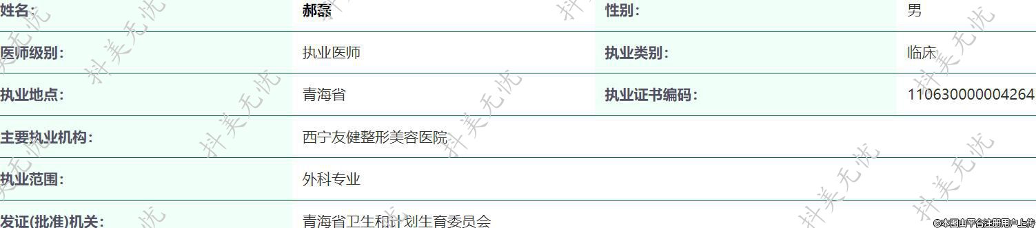 西寧友健醫(yī)療美容執(zhí)業(yè)醫(yī)師