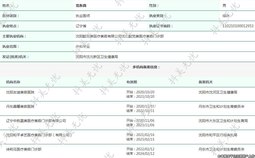 主要執(zhí)業(yè)機構:沈陽懿梵美醫(yī)療美容有限公司沈北懿梵美醫(yī)療美容門診部
