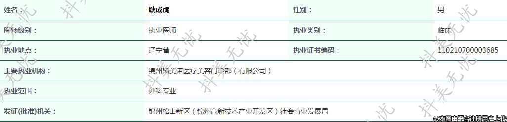 主要執(zhí)業(yè)機構:錦州斯美諾醫(yī)療美容門診部(有限公司)