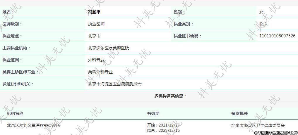 主要執(zhí)業(yè)機構(gòu):北京沃爾醫(yī)療美容醫(yī)院