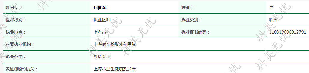 主要執(zhí)業(yè)機(jī)構(gòu):上海時(shí)光整形外科醫(yī)院