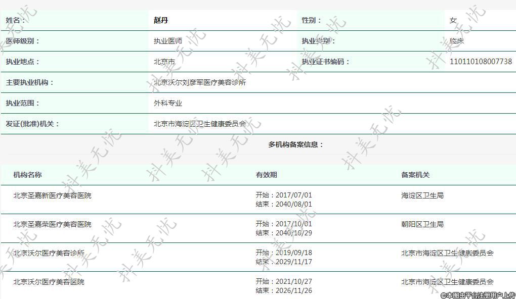 主要執(zhí)業(yè)機構(gòu):北京沃爾劉彥軍醫(yī)療美容診所