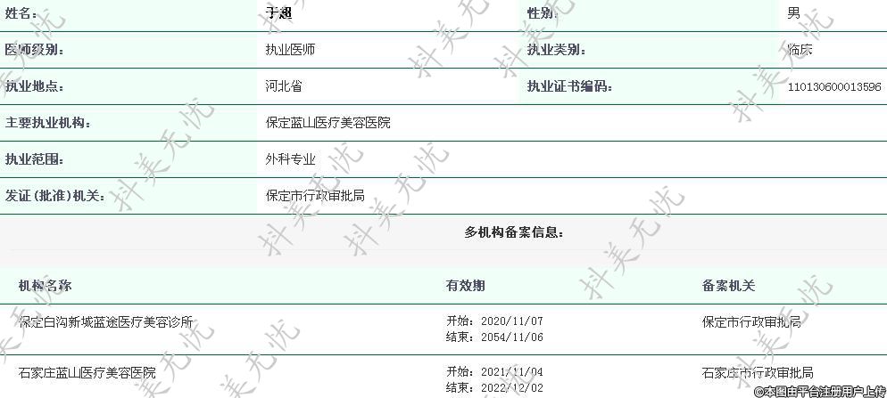 主要執(zhí)業(yè)機構:保定藍山醫(yī)療美容醫(yī)院