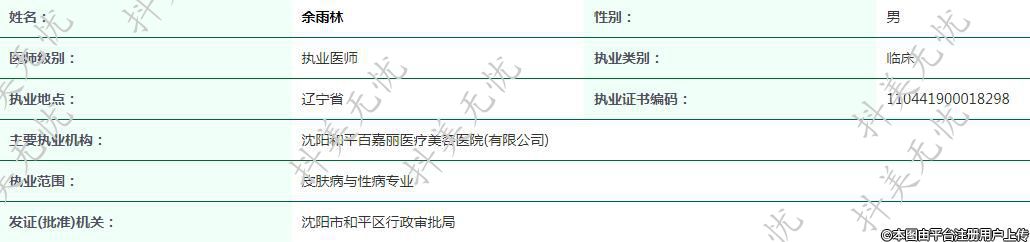 主要執(zhí)業(yè)機構(gòu):沈陽和平百嘉麗醫(yī)療美容醫(yī)院(有限公司)