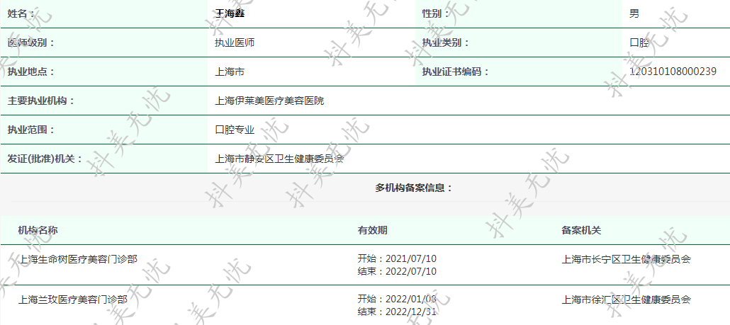 主要執(zhí)業(yè)機(jī)構(gòu):上海伊萊美醫(yī)療美容醫(yī)院